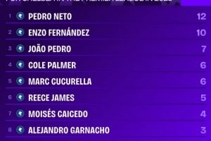2025年切尔西队内英超参与进球榜: