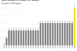 - 2025-11-20熬老头?赛季至今各队平均2.5个背靠背 勇士却有5个!