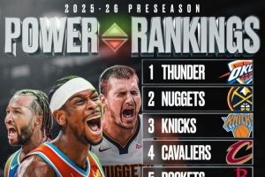 美媒BF评新赛季季前实力榜!雷霆掘金尼克斯前3 火箭第5湖人第7