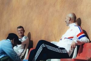 克罗斯更新社交媒体,晒出与齐达内、哈维一同为阿迪达斯拍摄广告的相关照片。