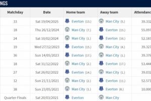 曼城vs埃弗顿战绩:近10场曼城8胜2平保持不败,进23球失3球