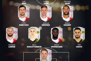 德甲官方球迷票选拜仁+多特最佳阵:凯恩、奥利塞领衔拜仁9人在列