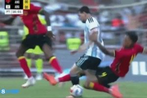 友谊赛这强度?梅西遭安哥拉球员背后剪刀脚,阿尔马达眉骨被打破