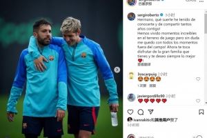 体育资讯10月8日讯 西班牙边卫阿尔巴将在本赛季结束后退役,前巴萨队友罗贝托社媒发文祝福。